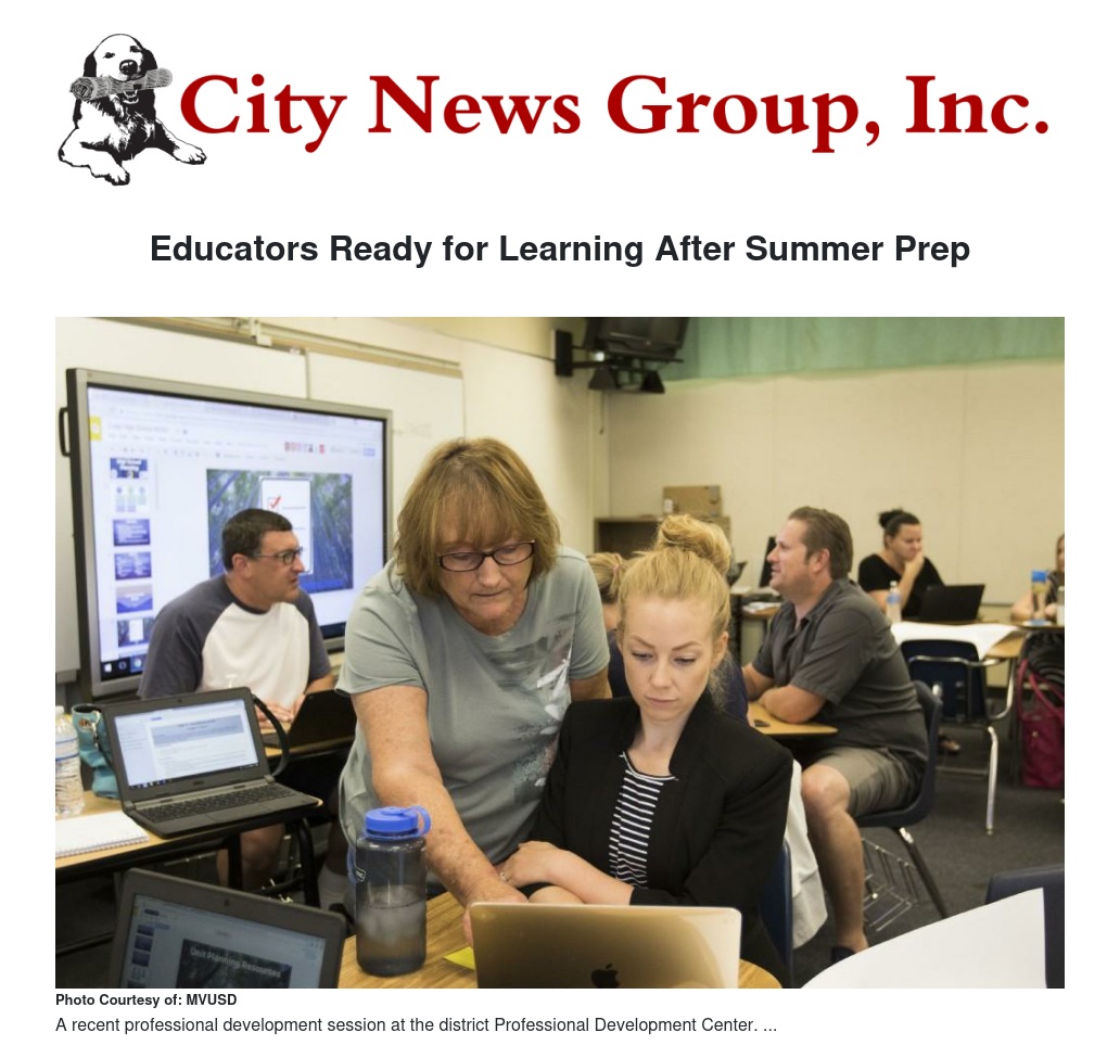 As we’ve mentioned a few times over the summer, our teachers were hard at work all summer so they are prepared as students return next week. We also had over 75% of our teachers complete training on the new English Language Arts textbooks that align with the new California Common Core State Standards. In addition, about 80 new teachers attended our New Teacher Orientation this week. We’re happy to have them in the MVUSD family and are excited to watch them champion equity for our students. As we start our new year, our educators are looking forward to a strong year of professional development through our six hours on district-wide flex days. The theme for these days will be “Champion Equity and Achievement for ALL Students”
