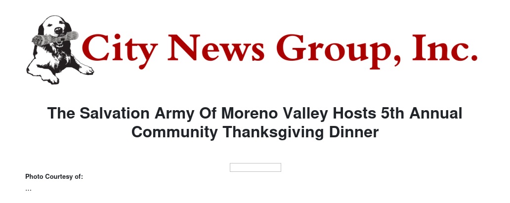 The Salvation Army Of Moreno Valley Hosts 5th Annual Community Thanksgiving Dinner