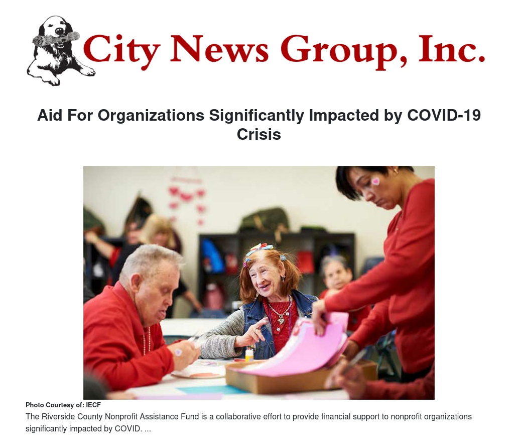 On June 9, the Riverside County Board of Supervisors approved $5 million in financial support to the nonprofit community using CARES Act funding. Funds are being dispersed through the Riverside County Nonprofit Assistance Fund that is administered by IECF, in partnership with the Riverside County Homeless Solutions and Workforce Department and the Inland Empire Funders Alliance.