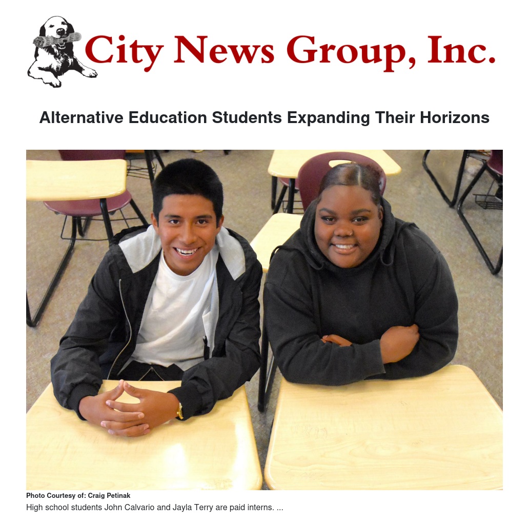 Alternative Education Students Expanding Their Horizons Through New Internship Program. Jayla Terry works for a non-profit organization serving thousands of needy Riverside County residents. John Calvario provides support for the Riverside mayor’s office working with community outreach programs.