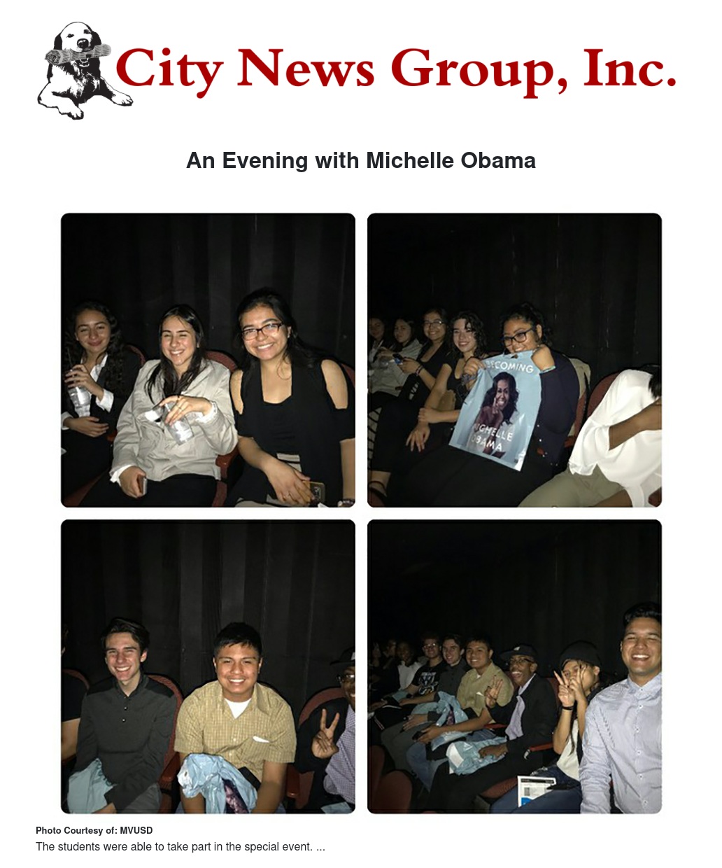 A small group of high school students from Moreno Valley were invited to an evening with Michelle Obama at the Forum in Los Angeles on Thursday, November 15. The tickets were made available after the Riverside County Office of Education (RCOE) received a personalized video from Michelle Obama thanking the county school districts for continuing support of the Reach Higher program. RCOE formed the Riverside County Education Collaborative in response to a 2014 White House request to help develop goals to help more high school students prepare for and graduation from college. The program’s goal includes supporting students as they apply to college, fill out FAFSA forms and more.