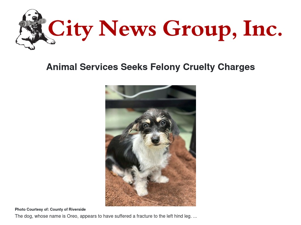 On Thursday (Aug. 1) Animal Services submitted its investigation to the Sheriff’s Department to combine the allegations. Animal Services is requesting the District Attorney’s Office consider felony animal cruelty in combination to the other allegations.