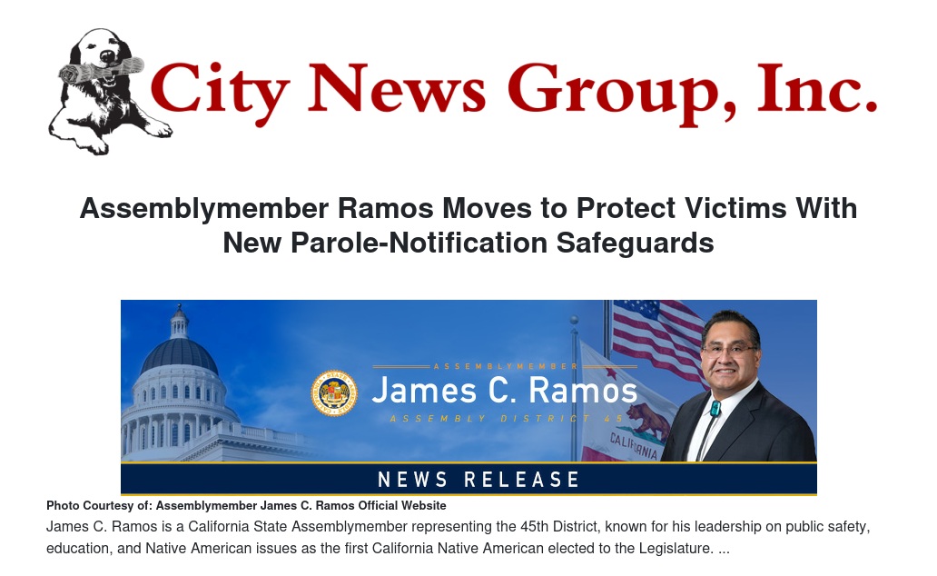 Assemblymember Ramos Moves to Protect Victims With New Parole-Notification Safeguards by Maria Lopez - City News Group, Inc.