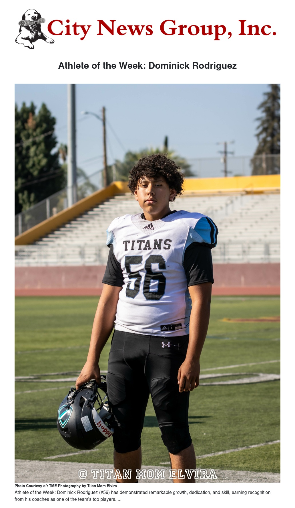 Athlete of the Week: Dominick Rodriguez by Titan Mom Elvira - City News Group, Inc.
