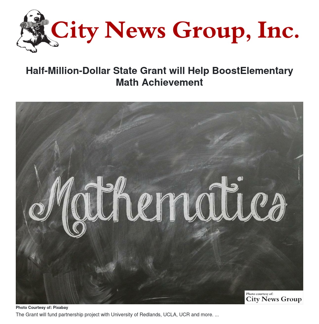 “This grant provides much-needed support to elementary teachers as they help students accelerate their mastery of California mathematics standards,” explained Chief Academic Officer Dr. Martinrex Kedziora.