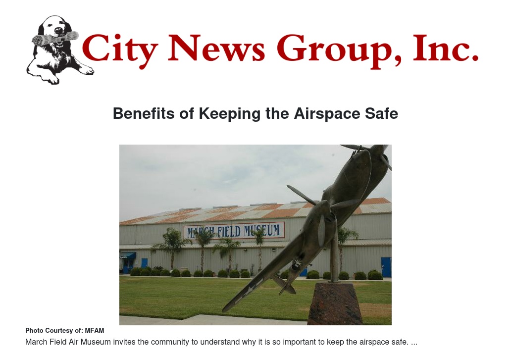 Recently, the March Field Air Museum presented a one-hour briefing by retired air traffic controller John Dutto, a 29-year FAA Air Traffic Control Supervisor and Air Traffic Control Specialist, who focused on how to keep our airspace safe.