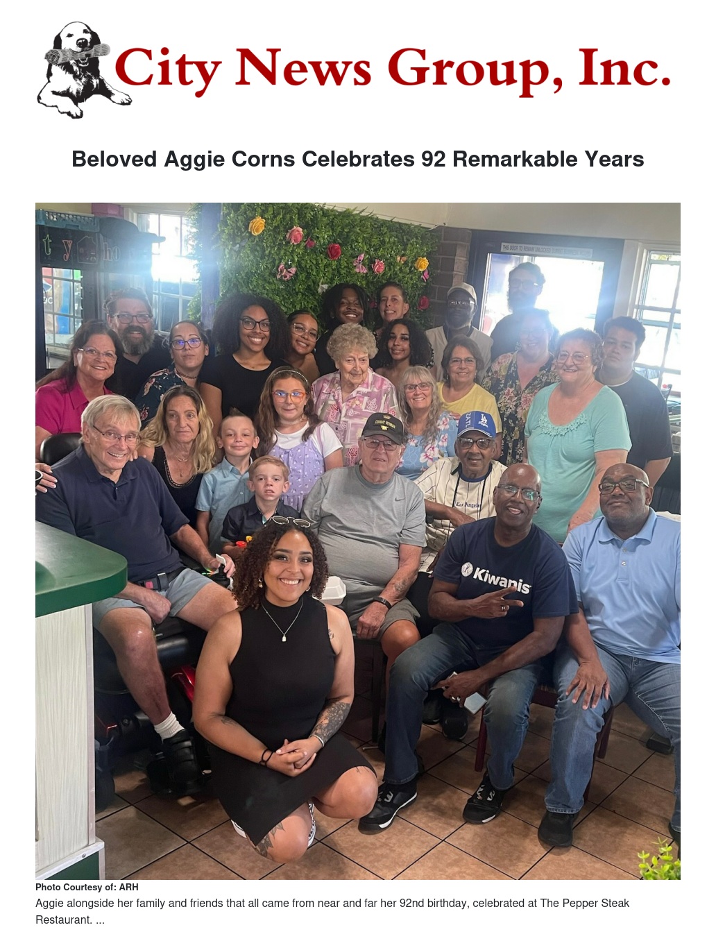 Beloved Aggie Corns Celebrates 92 Remarkable Years by CGPT - City News Group, Inc.