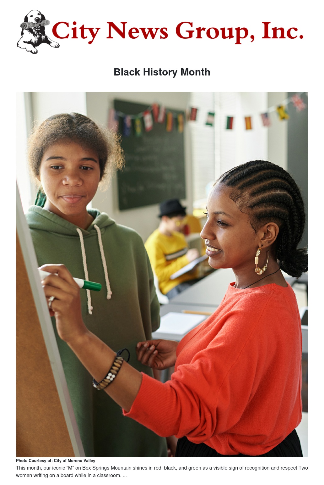 February gives us an important opportunity to pause, reflect, and recognize the profound impact that Black Americans have had, and continue to have, on our nation and on communities like Moreno Valley. Black History Month honors resilience, creativity, leadership, and the ongoing pursuit of opportunity and equity.