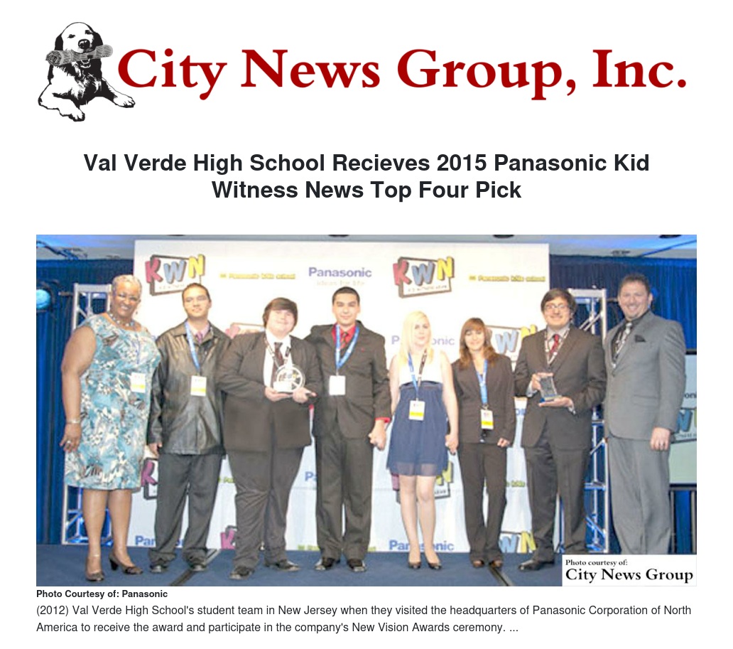 Val Verde High School Recieves 2015 Panasonic Kid Witness News Top Four Pick