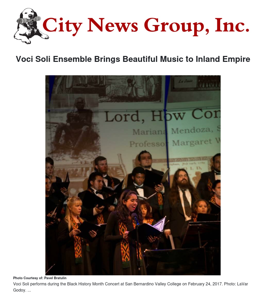 Voci Soli Ensemble Brings Beautiful Music to Inland Empire by Pavel Bratulin - City News Group, Inc.