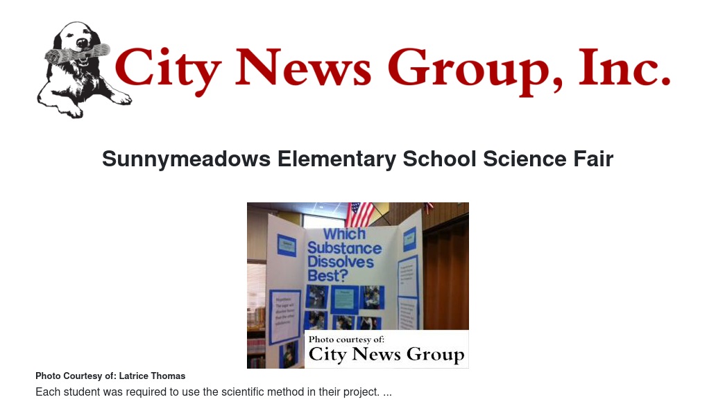 Sunnymeadows Elementary School recently held a School Science Fair on Monday, Feb. 9, in which third, fourth, and fifth graders participated. All grades below third participated in a group project amongst the classrooms.