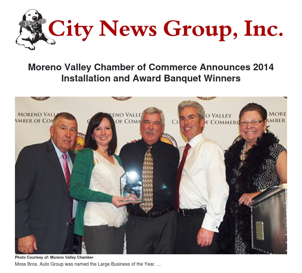 Moreno Valley Chamber of Commerce Announces 2014 Installation and Award Banquet Winners