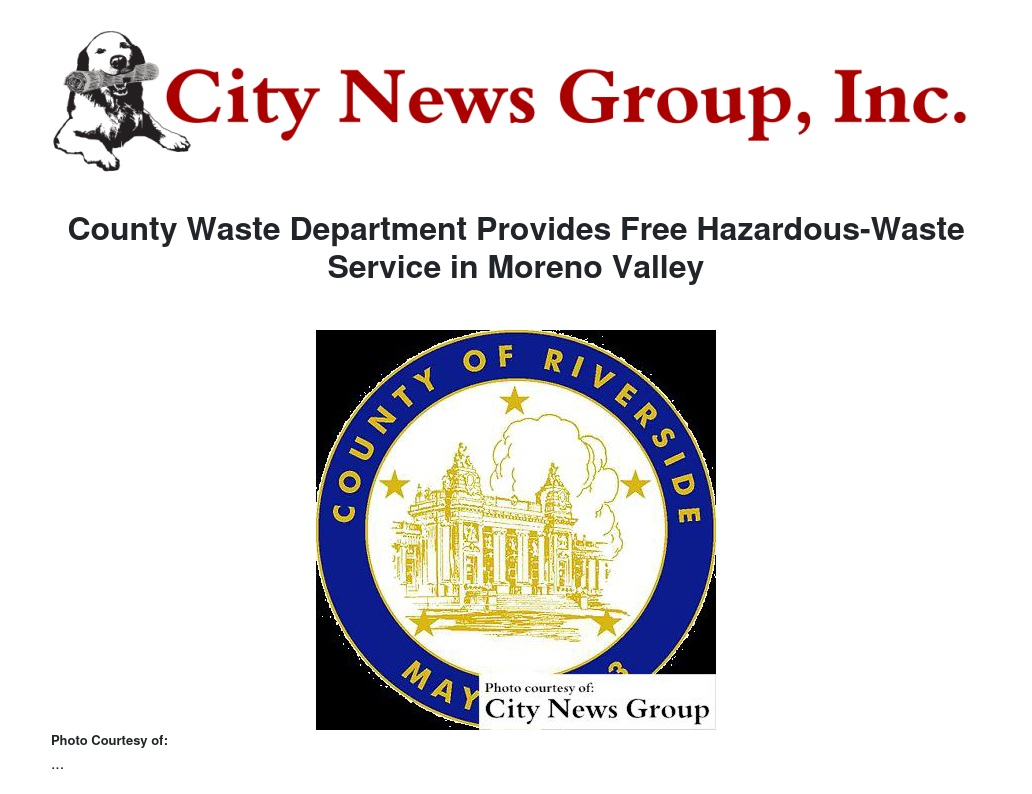 County Waste Department Provides Free Hazardous-Waste Service in Moreno Valley