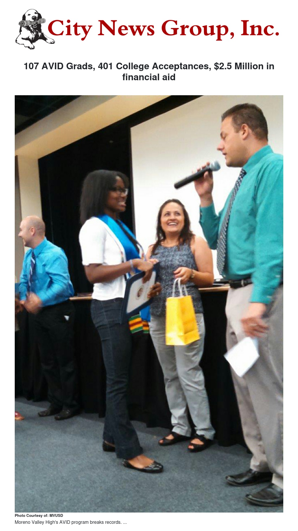 Moreno Valley High School's AVID (Advancement Via Individual Determination) program started 13 years ago as a small group of staff and students focused on graduating strong and heading to college.