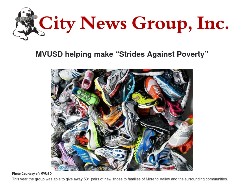 With Superintendent Dr. Martinrex Kedziora’s support, the organization was able to hold its annual shoe giveaway at Sunnymead Elementary School. The group provides assistance to struggling families which in turn helps students be better prepared to participate in learning at school.