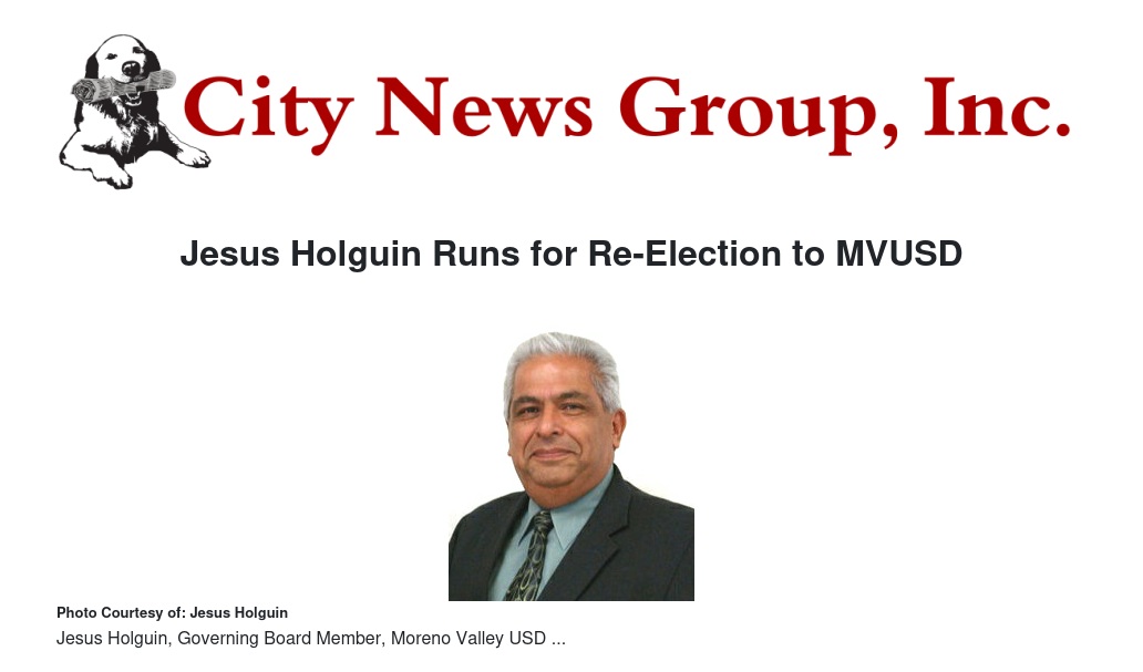 Moreno Valley Unified School District Board Member Jesus Holguin seeks re-election to a fourth term this November.