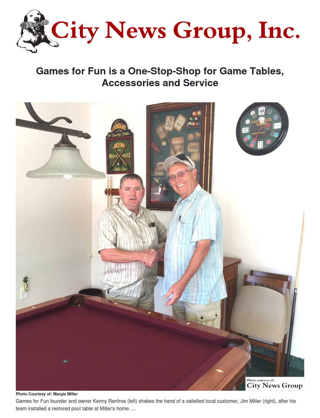 Games for Fun provides an amalgam of services, including home installation and manufacturing of game tables and accessories, storage, moving and shipping services, restoration and repair.