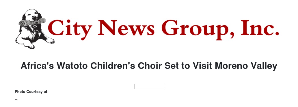 Africa's Watoto Children's Choir Set to Visit Moreno Valley