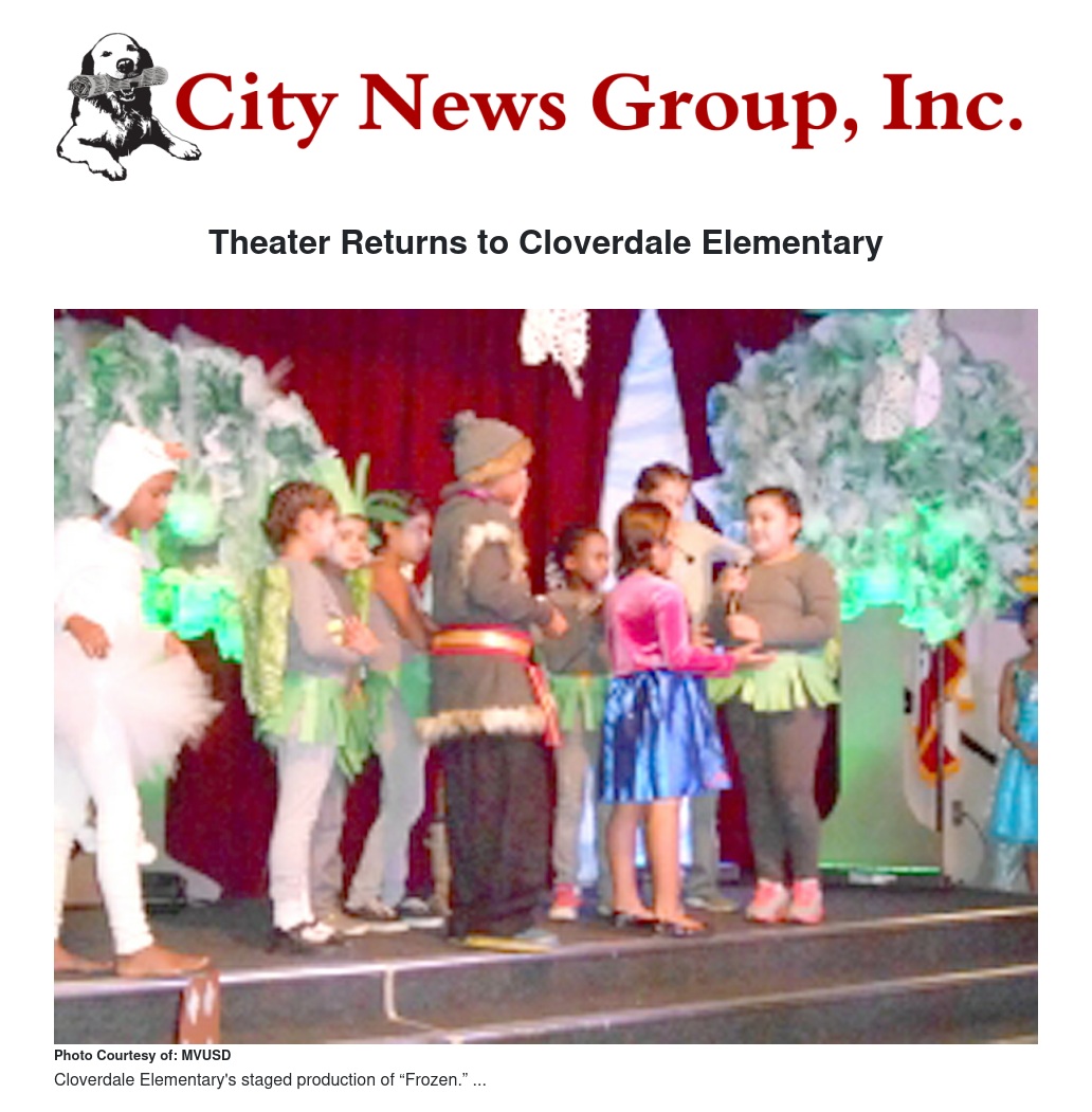 Theater has recently returned to Cloverdale Elementary School. The school staged its first production in many years when students in grades 3-5 presented their version of “Frozen.”