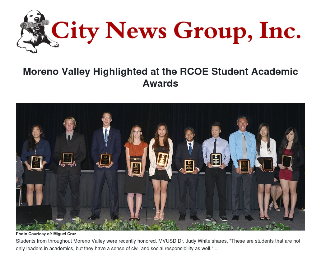 Moreno Valley Highlighted at the RCOE Student Academic Awards