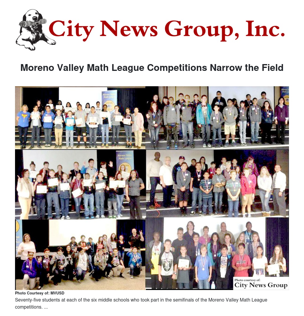 Moreno Valley Math League Competitions Narrow the Field
