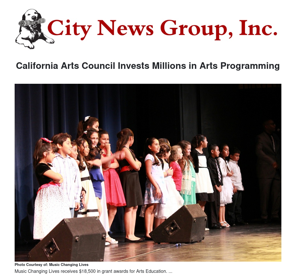 On June 12, 2018, Music Changing Lives, a leading after school program in the field of music and art enrichment programs, received two grant awards totaling $18,500. The grants were awarded by the California Arts Council for the purpose of Arts Education.