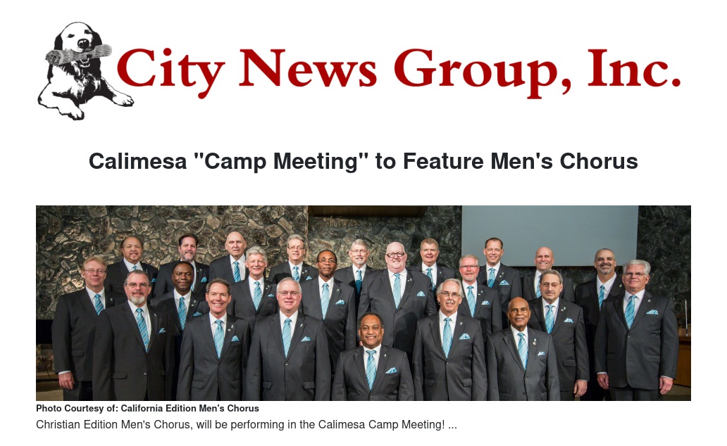 Calimesa "Camp Meeting" to Feature Men's Chorus by John Parrish - City News Group, Inc.