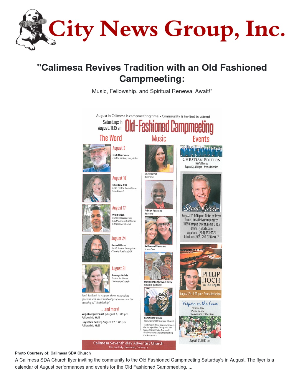 Our neighbors at the Calimesa Seventh Day Adventist Church would like to invite the entire community to an Old Fashioned Campmeeting!