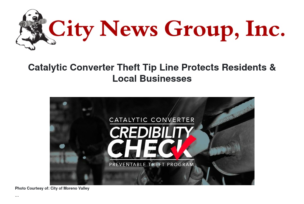 Catalytic converter theft has become a nationwide issue, and the City of Moreno Valley is working hard to protect the community.