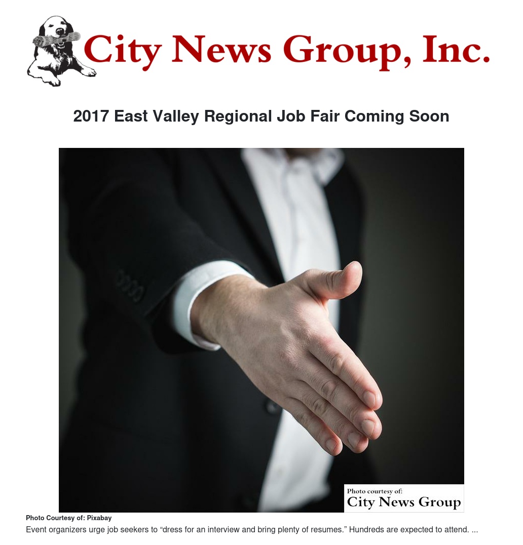 2017 East Valley Regional Job Fair Coming Soon by Chester Wallace - City News Group, Inc.