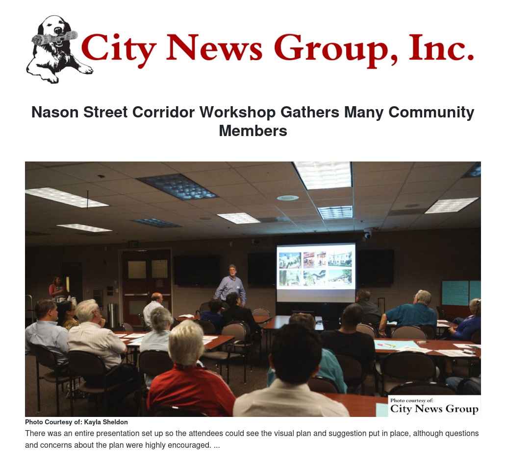 The meeting was designed to “develop a shared vision for the Nason Street corridor.”