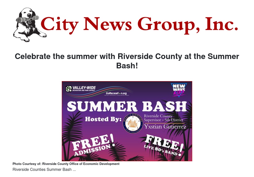 Join us at our Summer Bash in Valley-Wide Regional Park! Together, we can enjoy good food from our local food vendors while listening to a live 80's band, participate in fun activities like rock climbing and mazes, and learn more about county resources. In addition, if you are one of the first 150 at the event, you can receive a FREE hot dog and drink!