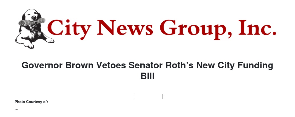 Governor Brown Vetoes Senator Roth’s New City Funding Bill