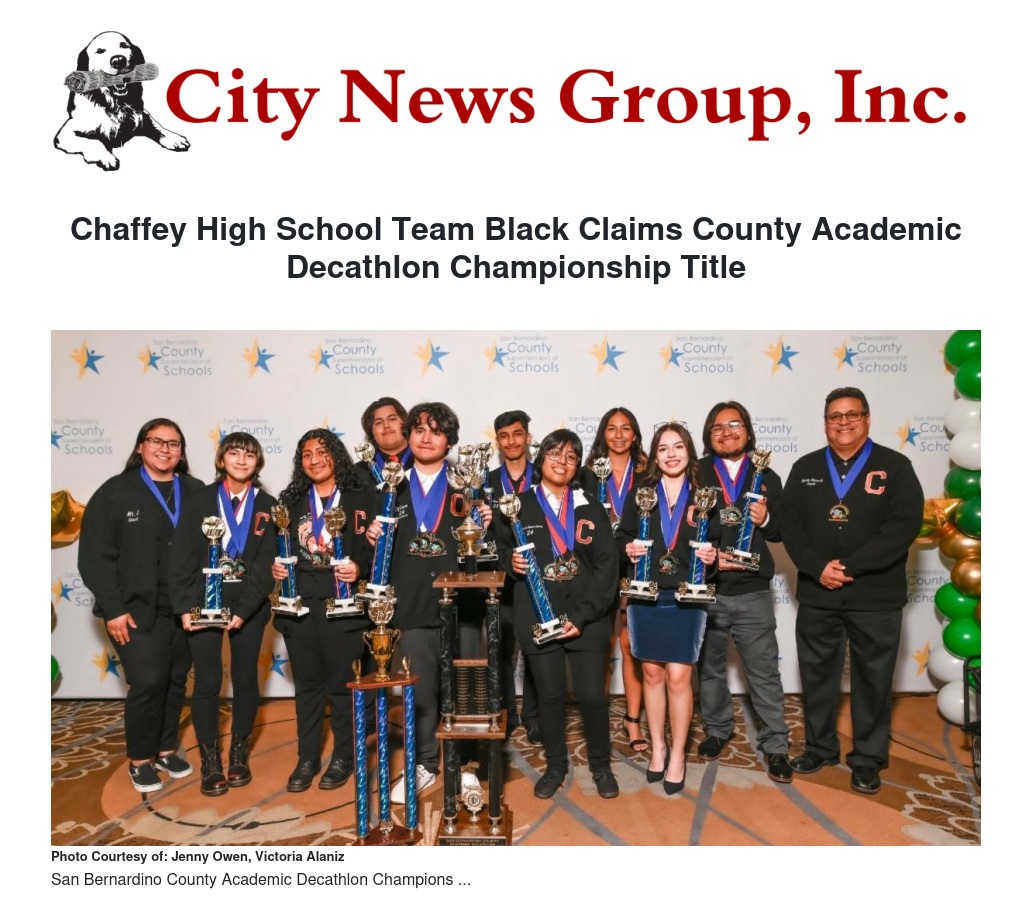 Chaffey High School Team Black Claims County Academic Decathlon Championship Title by San Bernardino County Superintendent of Schools - City News Group, Inc.