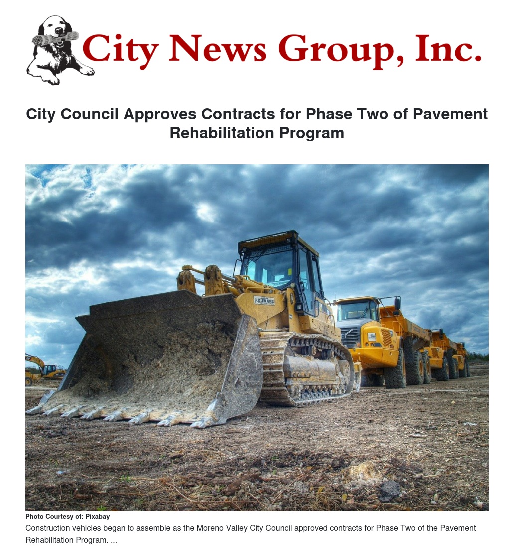 City Council Approves Contracts for Phase Two of Pavement Rehabilitation Program by Dianna Baskin - City News Group, Inc.