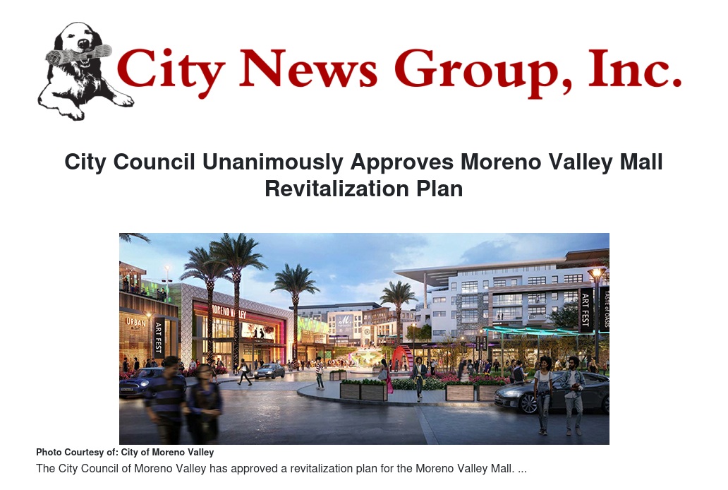 The Moreno Valley City Council unanimously approved a comprehensive plan to reimagine the Moreno Valley Mall at a recent City Council meeting.