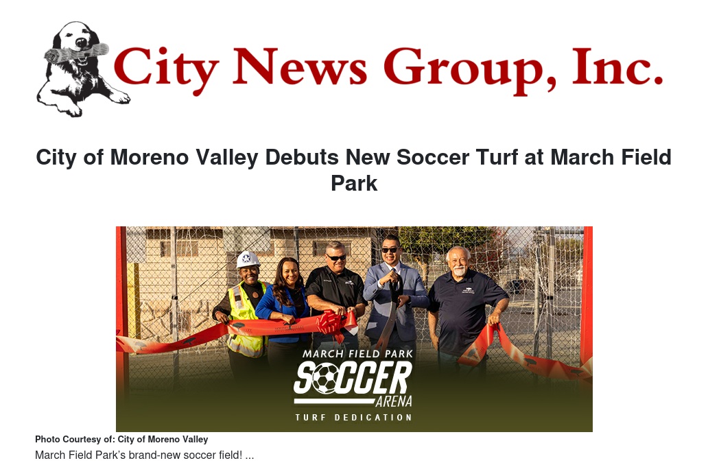 City of Moreno Valley Debuts New Soccer Turf at March Field Park by City of Moreno Valley - City News Group, Inc.