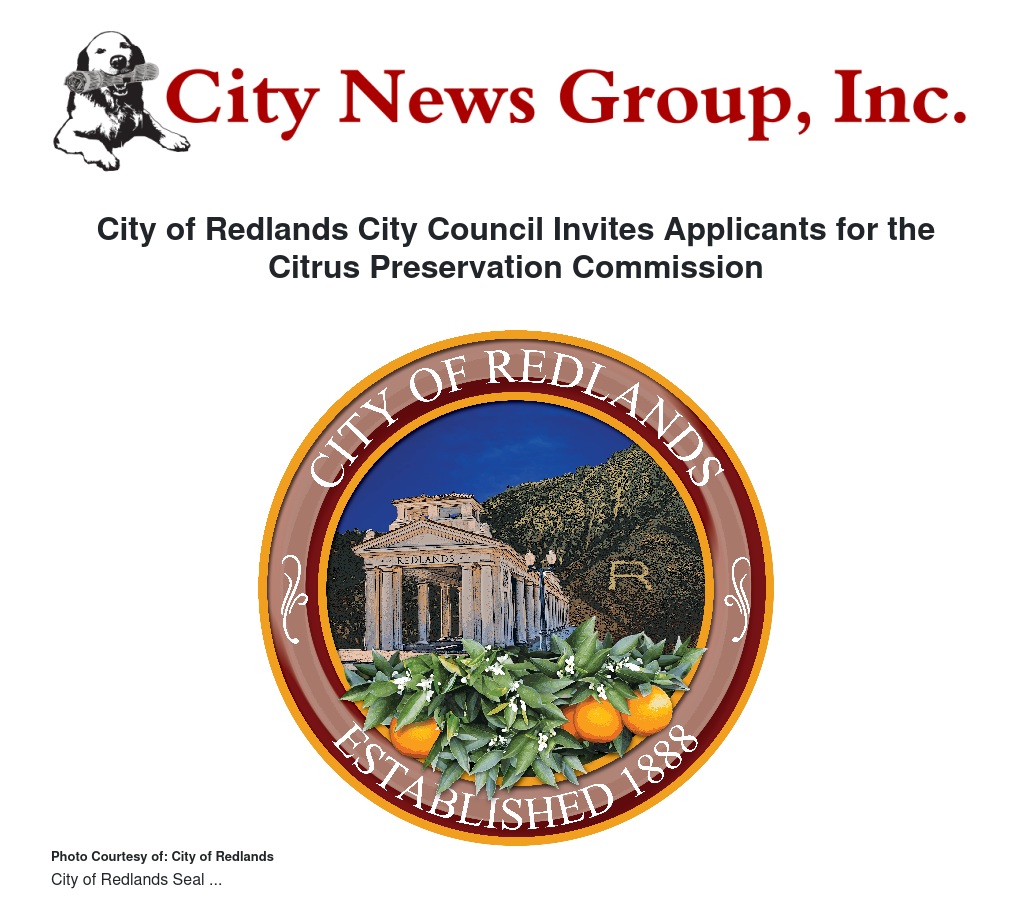 The City of Redlands invites individuals to apply for a position on the Citrus Preservation Commission. Members are appointed by the City Council. Residents of Redlands and surrounding communities are encouraged to apply. The Citrus Preservation Commission acts in an advisory capacity to the City Council in all matters pertaining to the acquisition, improvement, preservation and retention of citrus properties within the City. The Citrus Preservation Commission meets at 4 p.m. on the second Tuesday of every month.
