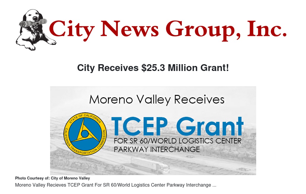 The City of Moreno Valley has received $25.3 million in funding from the State of California Trade Corridor Enhancement Program (TCEP) to secure the right-of-way for the SR 60/World Logistics Center Parkway Interchange Improvement Project.