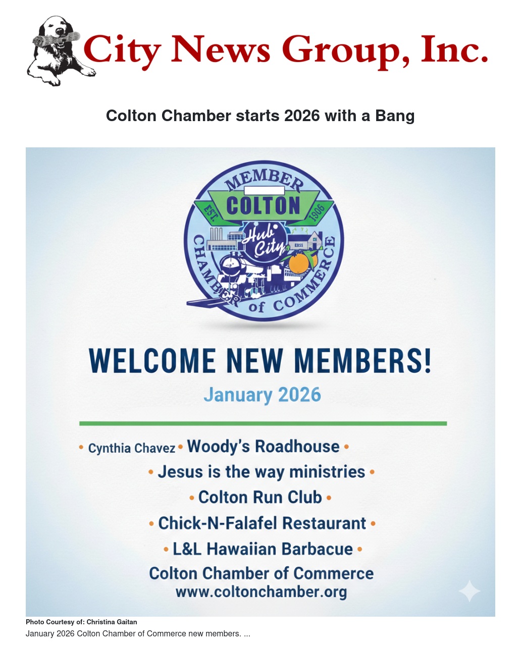 Colton Chamber starts 2026 with a Bang by Christina Gaitan - City News Group, Inc.