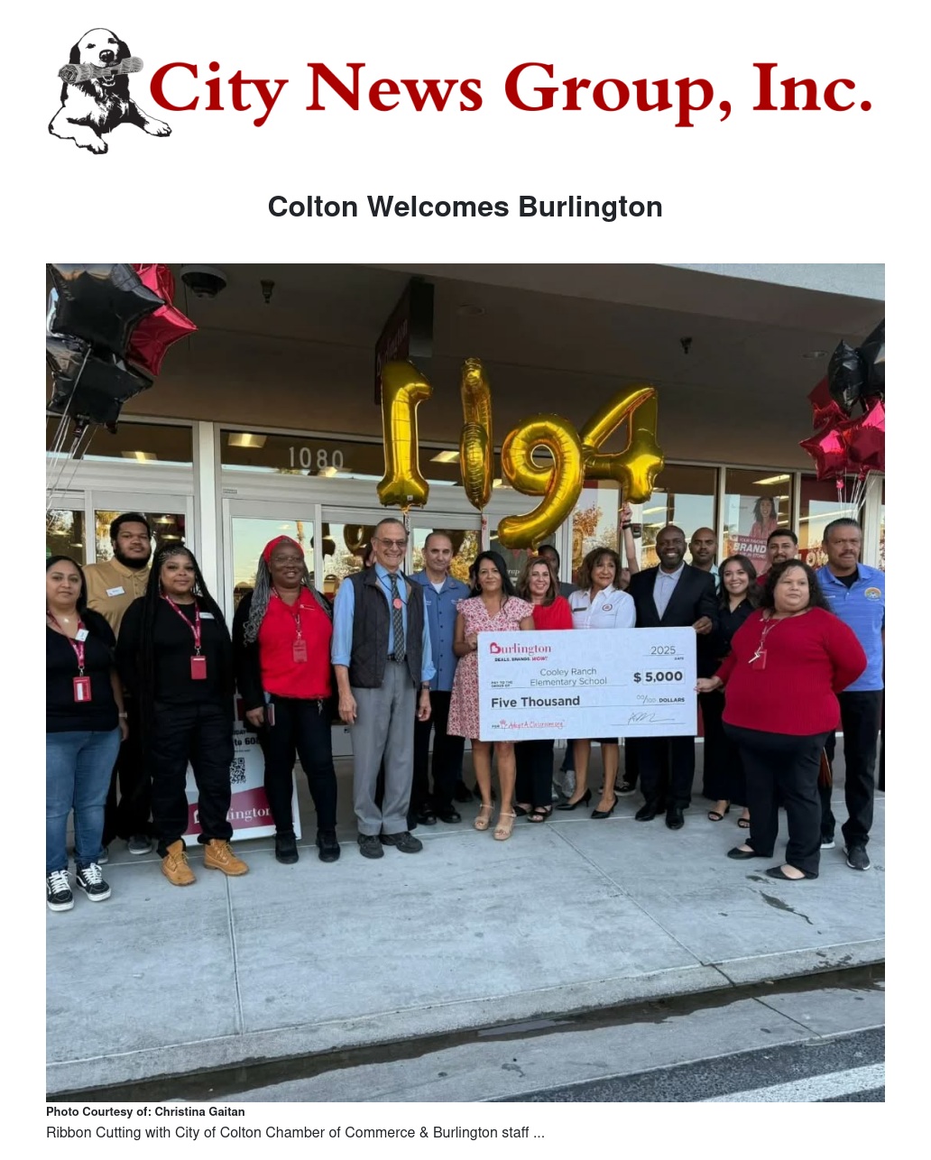 The Colton Chamber of Commerce extends its warmest congratulations to Burlington and wishes the store a prosperous future in our city.