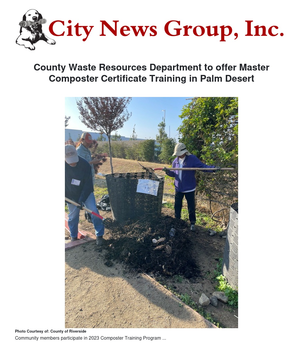 County Waste Resources Department to offer Master Composter Certificate Training in Palm Desert by County of Riverside - City News Group, Inc.