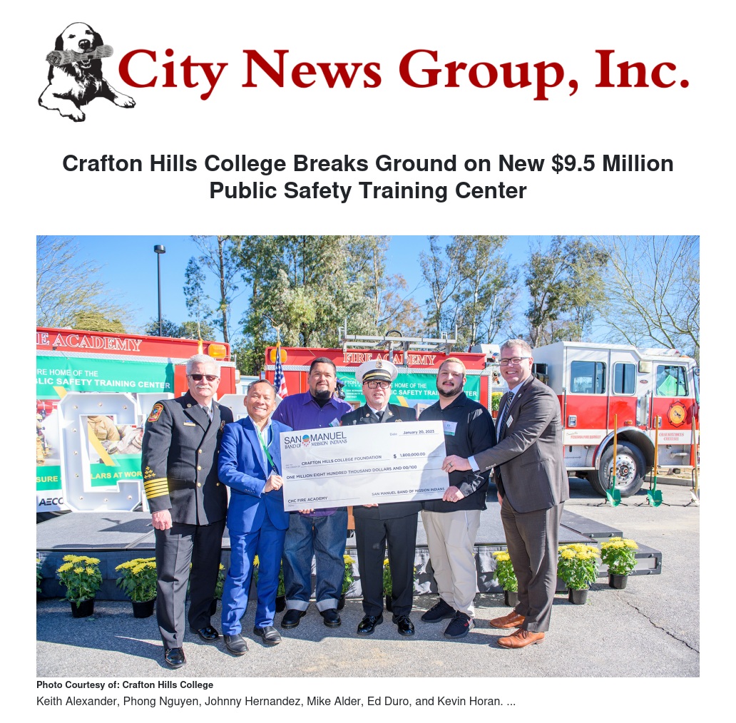 Crafton Hills College Breaks Ground on New $9.5 Million Public Safety Training Center by Michelle Riggs - City News Group, Inc.