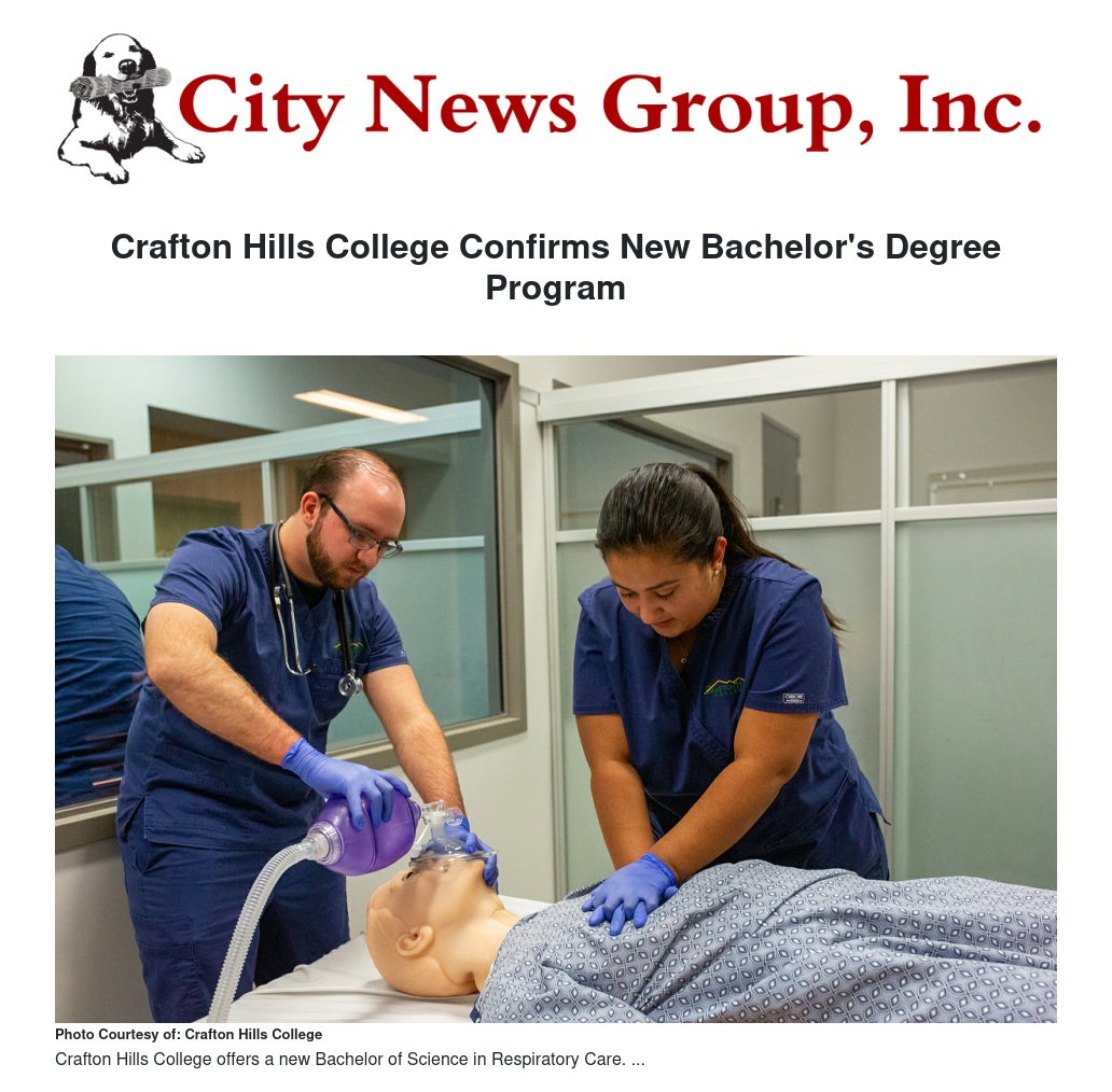 Crafton Hills College (CHC) is thrilled to announce the approval of a new Bachelor of Science degree in Respiratory Care, continuing the college’s legacy  of proactively meeting the workforce readiness needs for the Inland Empire and beyond.