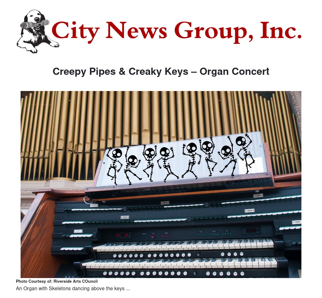 If you are so inclined, come in costume! The concert is free, but a freewill offering will be accepted for the Organ Dedicated Fund.