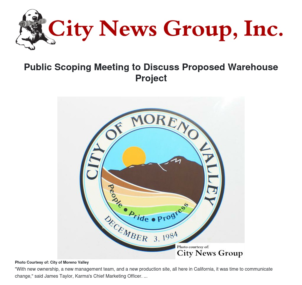 A public scoping meeting to discuss the proposed Moreno Valley Logistics Center project will be held on Monday, July 6.