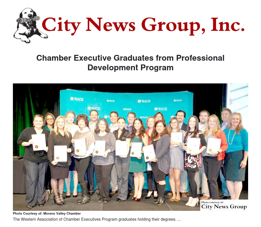 Oscar Valdepeña, the President/CEO of the the Moreno Valley Chamber of Commerce, was among the 24 chamber executives to graduate last Friday from Academy, a professional development program presented by the Western Association of Chamber Executives (W.A.C.E.).