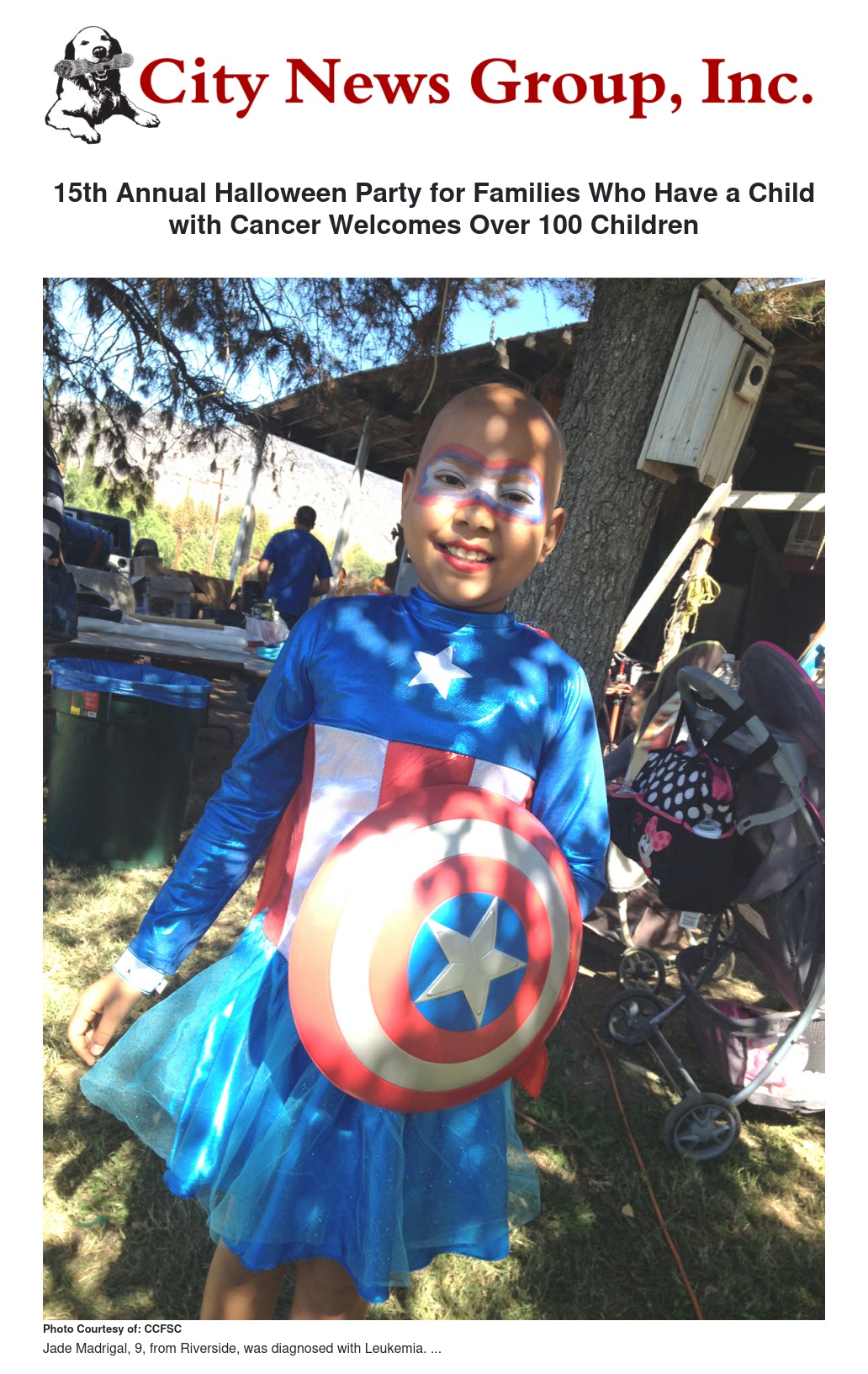 Every fall, the Childhood Cancer Foundation of Southern California (CCFSC) invites children with cancer to join them for their Annual Halloween Party. This year, Greenspot Farms in Mentone welcomed the group of over 100 children and their parents to enjoy an afternoon of family fun.