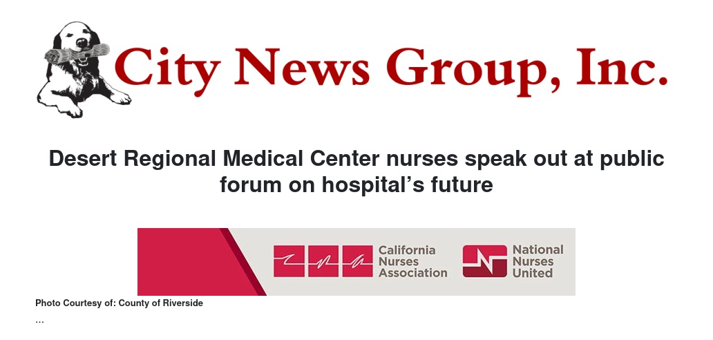 Nurses at Desert Regional Medical Center (Desert Regional) in Palm Springs, Calif. participated in a public forum on March 5 regarding the future of the public hospital, which is currently leased by Tenet Healthcare, a massive health care corporation worth more than $9 billion. At the forum, hosted by the Desert Healthcare District and Foundation, nurses spoke out about the failure of Tenet to properly maintain the facility, fix vital medical equipment, and staff units appropriately.