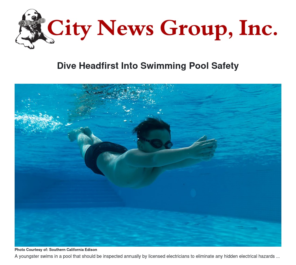 “It’s vital to periodically have your pool inspected to ensure that pool lighting, ground-fault circuit interrupters and all grounding and bonding systems are functioning properly,” said Ted Gribble, senior manager of Wildfire and Public Safety at Southern California Edison. “These inspections should only be done by licensed electricians with experience working on pools, hot tubs and spas.”